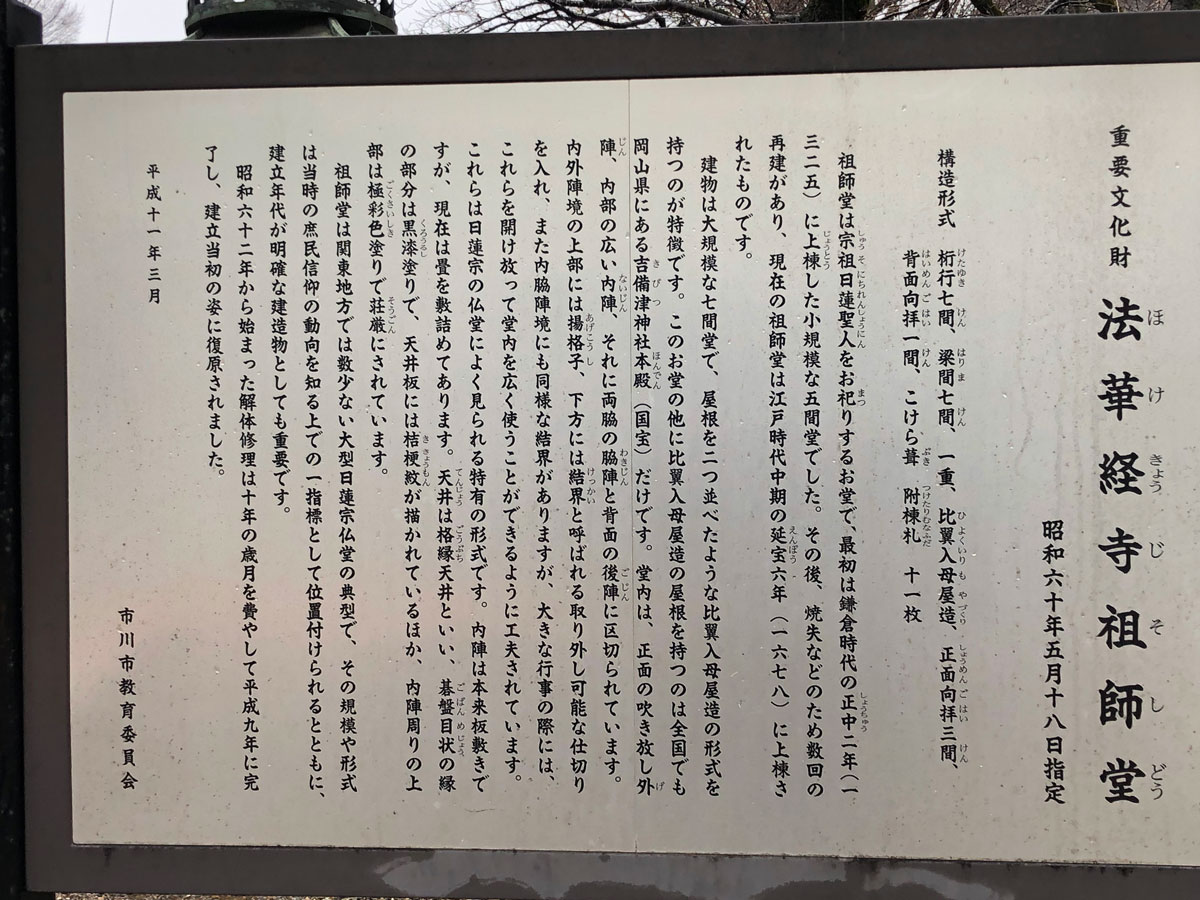 以下に市川市教育委員会による祖師堂の概略について記します。