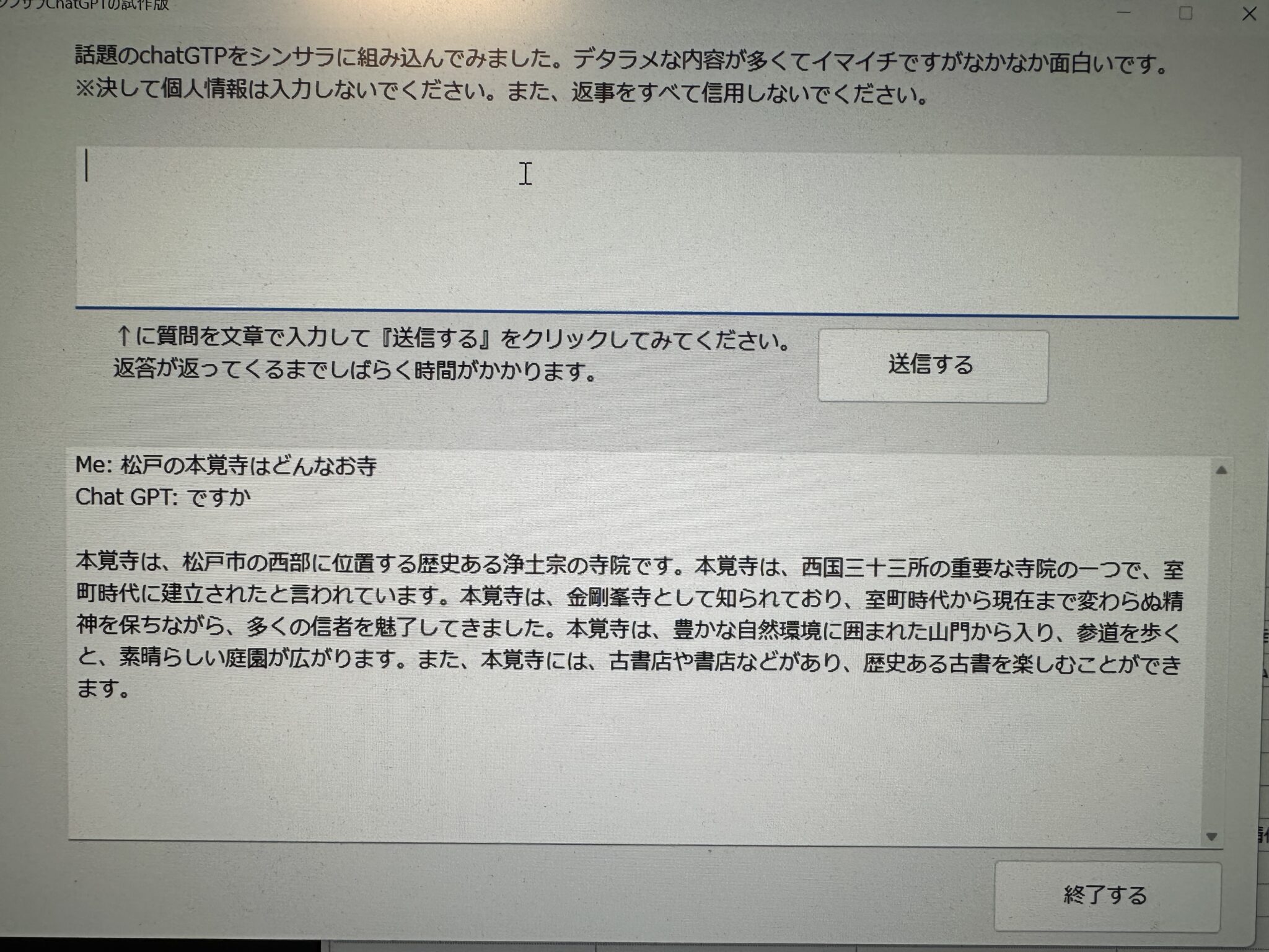 「出雲のひいおじいちゃんも戦争に行っていたけど、無事に帰ってこれた。お寺のひいおじちゃんも同じ。もしも、二人が戦争で死んでいたら、お母さんもお父さんも生まれてないから、あなたもこの世にはいないのよ。」