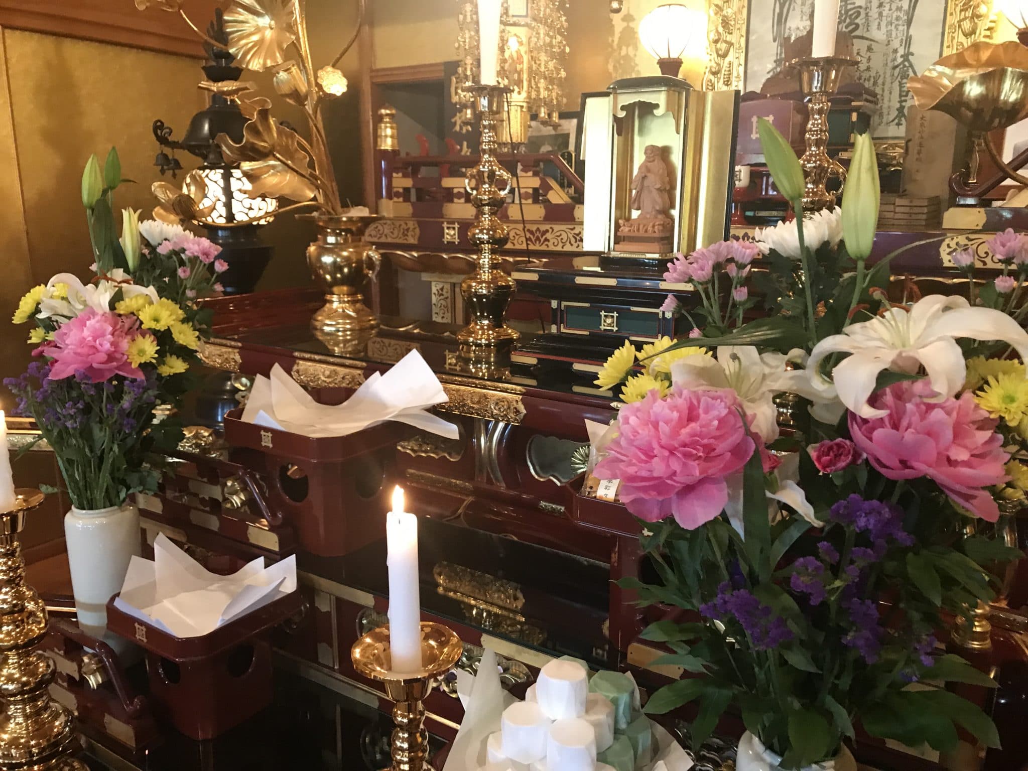 お知らせ 2021.11.22 令和3年御会式法要 令和3年11月21日(日)14時より、本覚寺にて宗祖日蓮聖人の第740遠忌御会式法要を行いました。 コロナになって以降、檀家さんと一同に会しての行事を自粛してまいりましたが、久し振りに檀家さんが集まっての行事となりました。 法要後、世話人さんの81歳の誕生日のお祝いもささやかながら行いました。おめでとうございます。 皆様の元気な笑顔が見れて良かったです。 令和3年日蓮聖人御会式法要令和3年日蓮聖人御会式法要令和3年日蓮聖人御会式法要令和3年日蓮聖人御会式法要令和3年日蓮聖人御会式法要 加藤 智章 千葉県松戸市日蓮宗本覚寺副住職の加藤智章です。当ホームページを管理・運営しております。 令和3年ダイアモンド富士令和4年新年星祭祈祷会