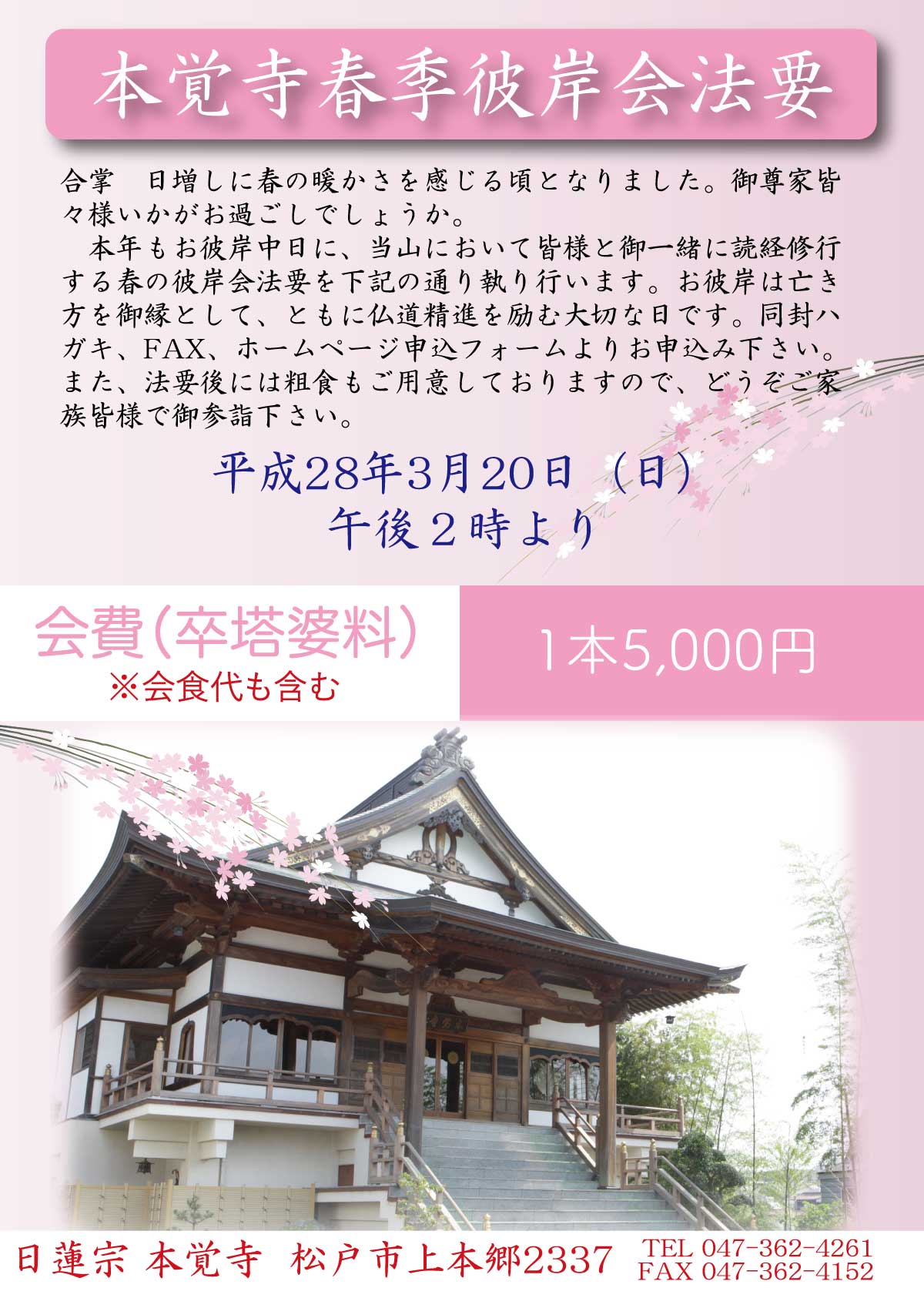 例年8月に行っております本覚寺施餓鬼会法要ですが、新型コロナウイルスの感染が終息をみないため、皆様一同に会しての施餓鬼会法要を中止することといたしました。