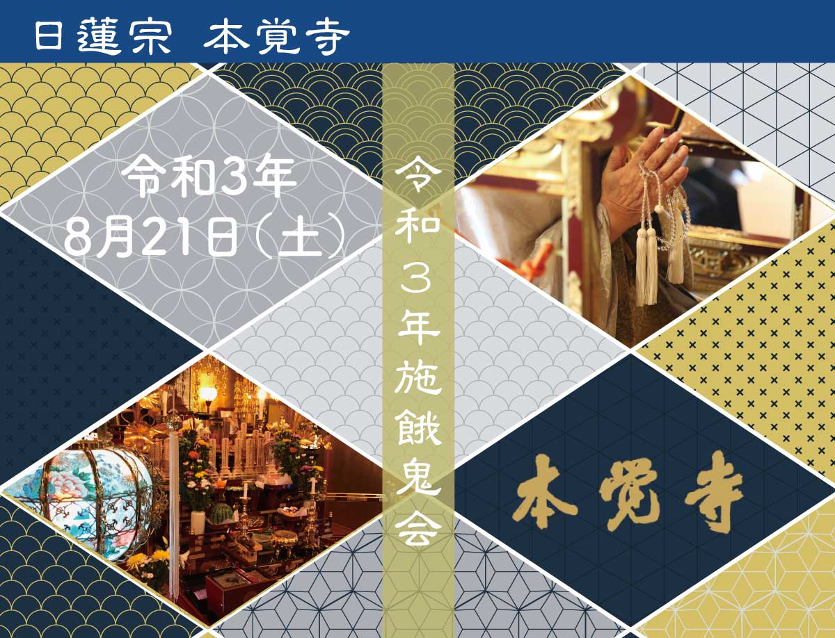 例年8月に行っております本覚寺施餓鬼会法要ですが、新型コロナウイルスの感染が終息をみないため、皆様一同に会しての施餓鬼会法要を中止することといたしました。