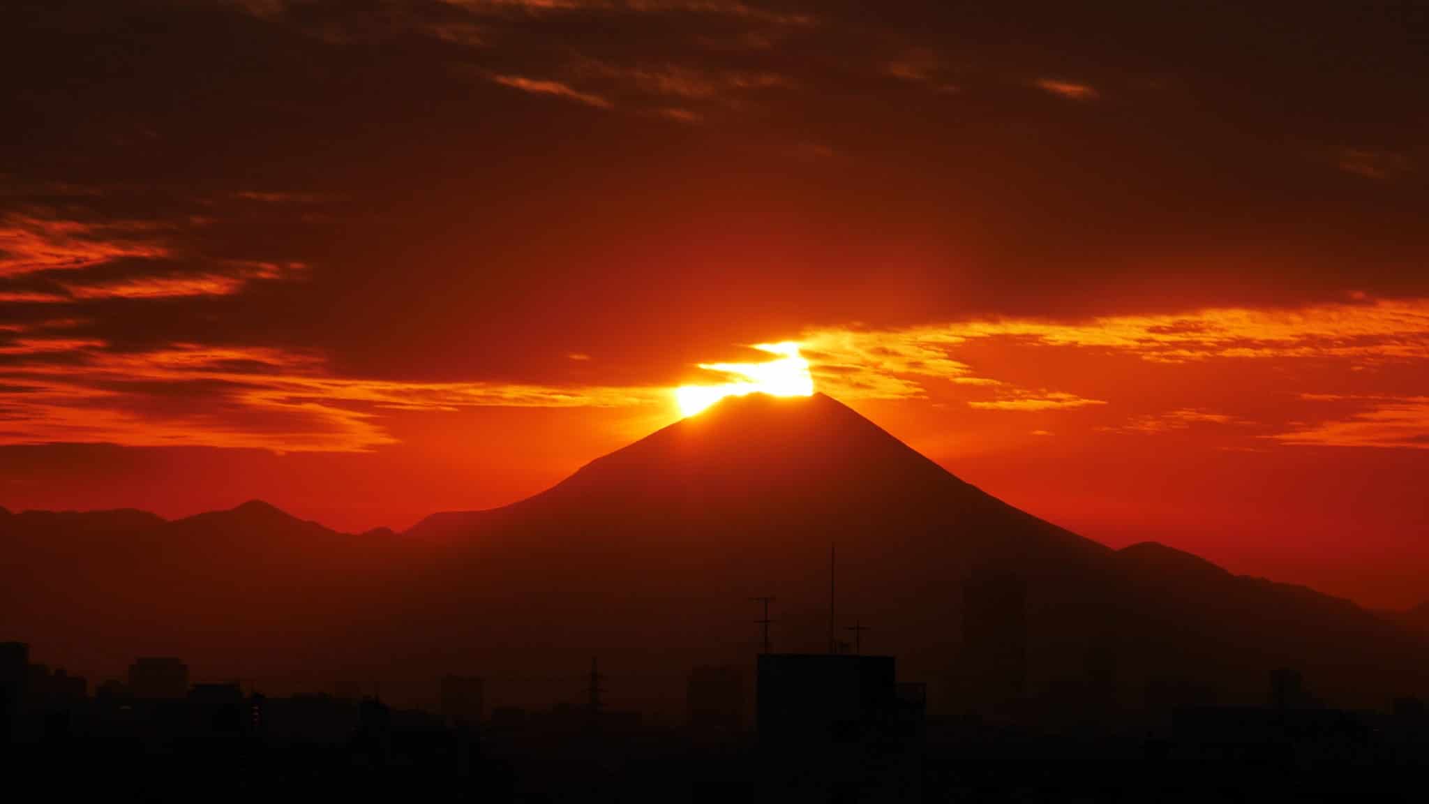 「そろそろダイアモンド富士が見える時期なのかな?」と思い、夕方になると境内より西の空を眺め、日に沈む太陽と富士山の風景に着目するようになりました。