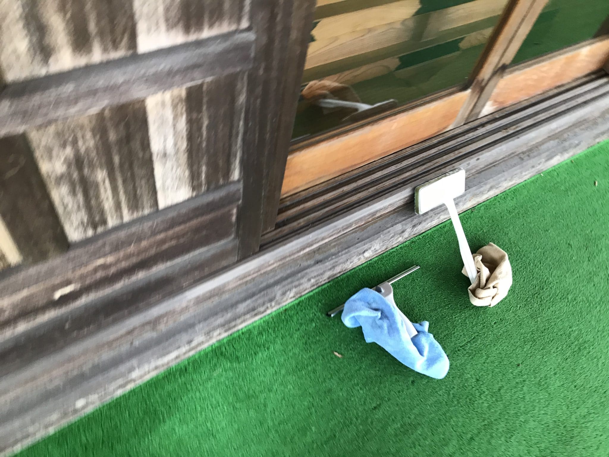 雨が降っている為、湿気がかなり高い状況でした。湿気のせいか、本堂の窓の汚れがかなり気になったので、台風が近づいていますが、窓拭きを重点的に行いました。
