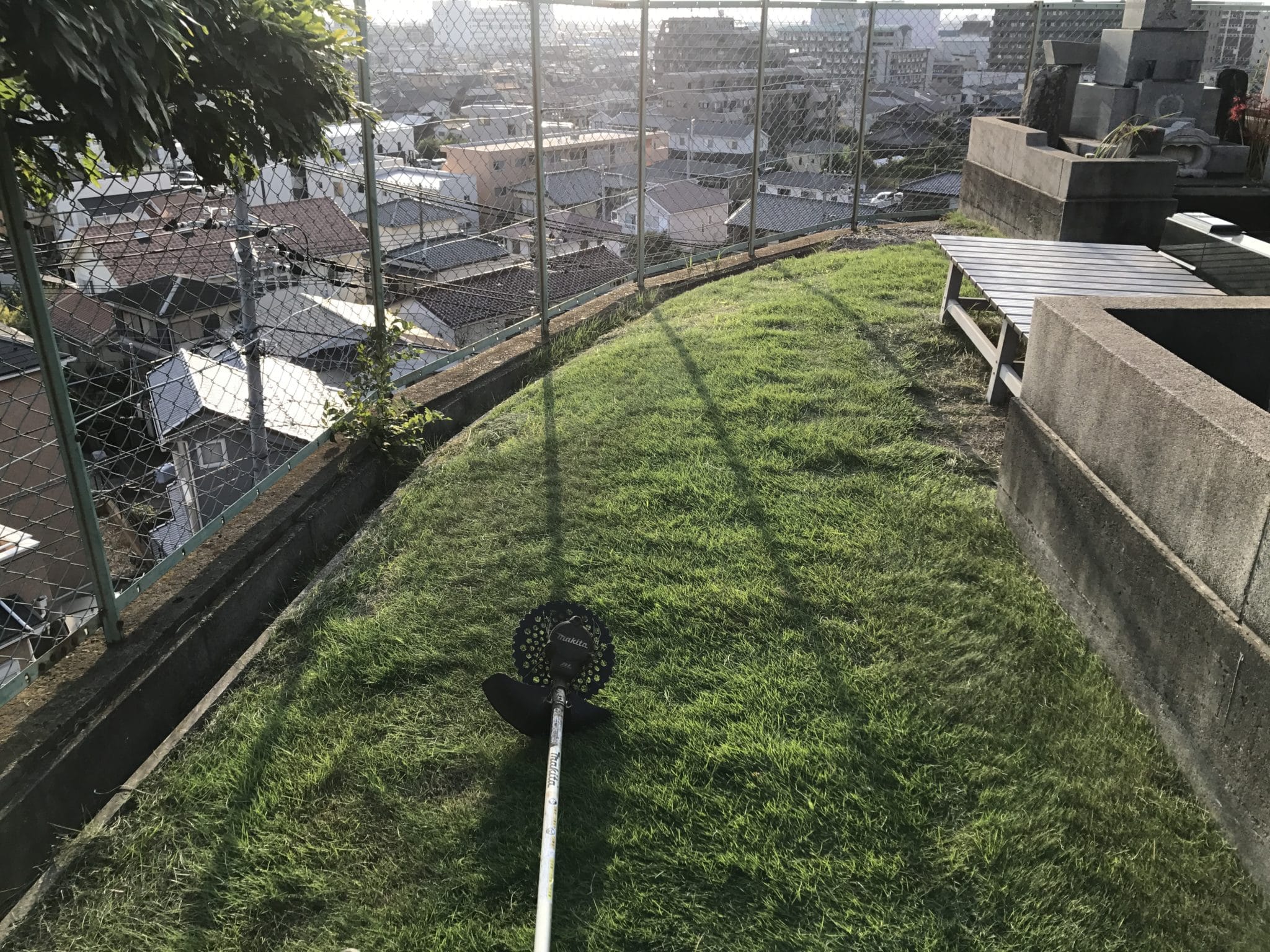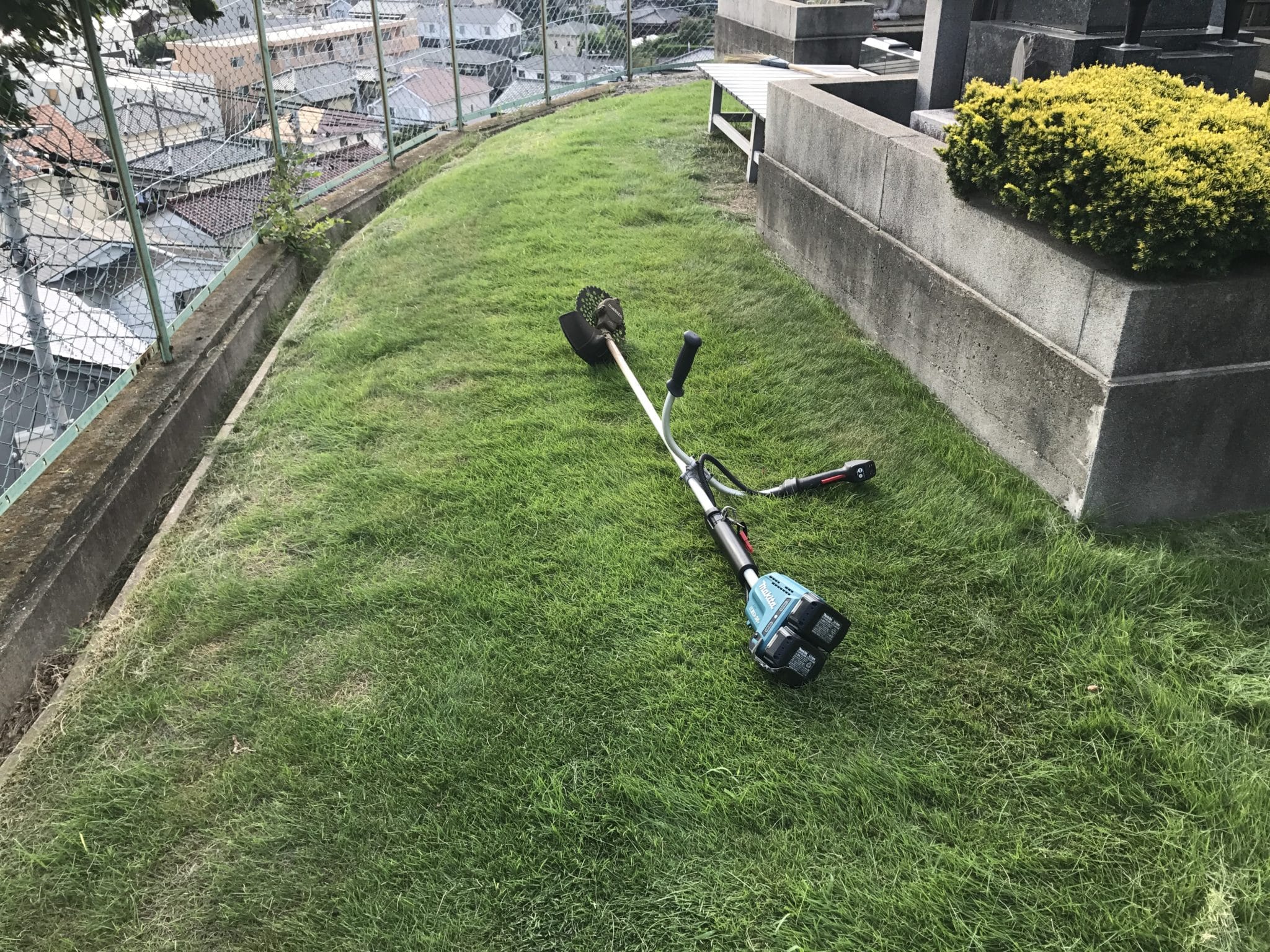午前中に引き続き境内の芝刈です。