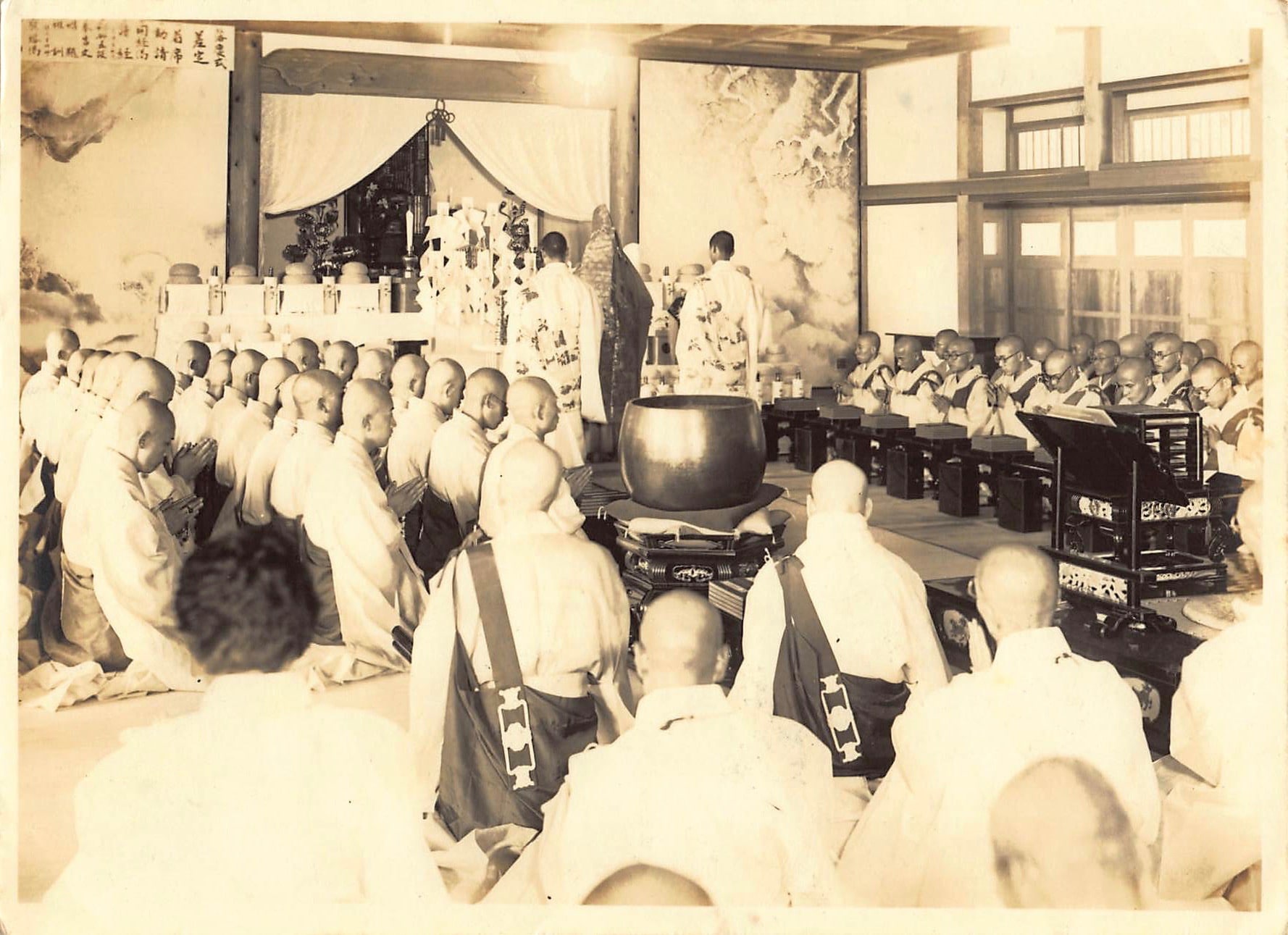 今回出てきた写真(昭和15年5月の日付)は、第1期信行道場の様子を写したものです。昭和14年4月30日に撮影された信行道場の落慶法要の写真も一緒に同封されておりましたので、未確認ではありますが、日蓮宗の正式な教育機関として信行道場が開設された最初の訓育主任は、当山の雲洞上人だったのかもしれません。