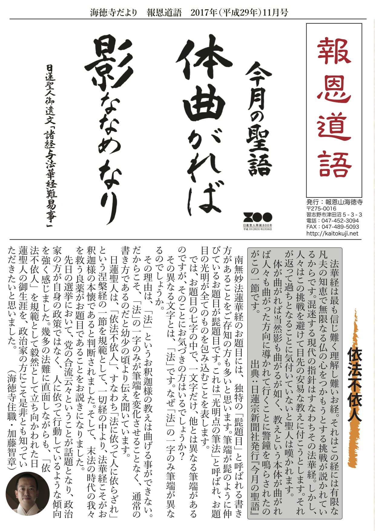 今月作成した文章は、日蓮聖人御遺文から「体曲がれば影ななめなり」を引用いたしました。
