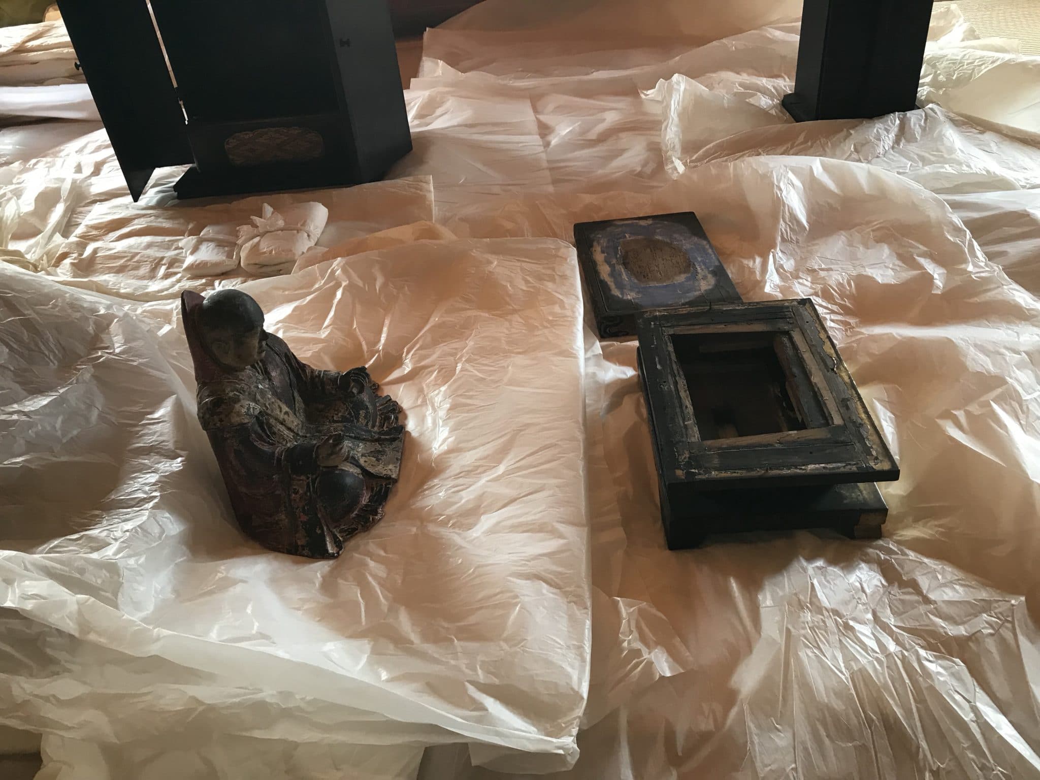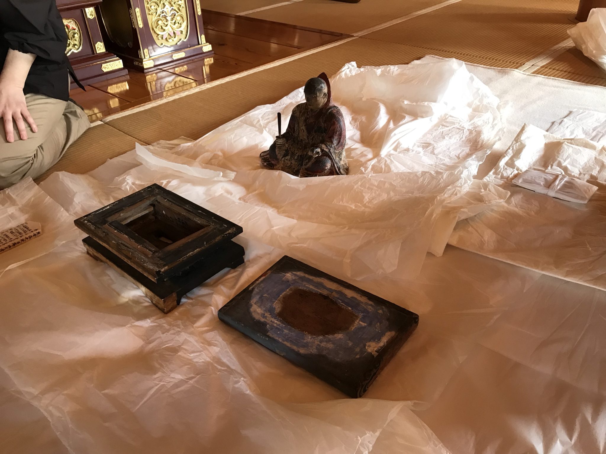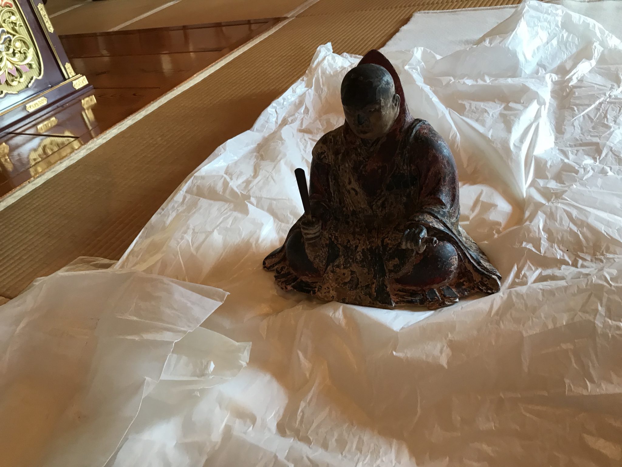 その前に、立正大学仏教学部にて修復していただいた日蓮聖人像ならびに鬼子母神が本覚寺へと戻ってきます。