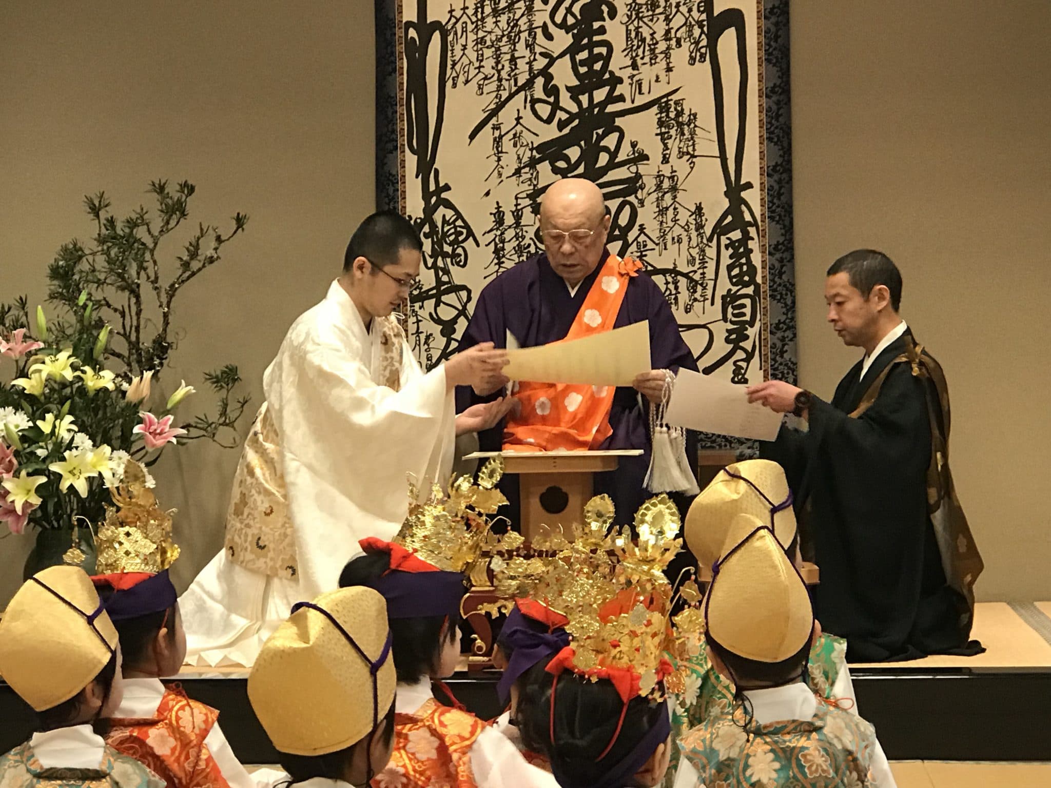 祖師堂での法要終了後、新井日湛貫首様より直接感彰状の贈呈がございました。貫首様、あいかわず声が大きく、とても元気そうでした。