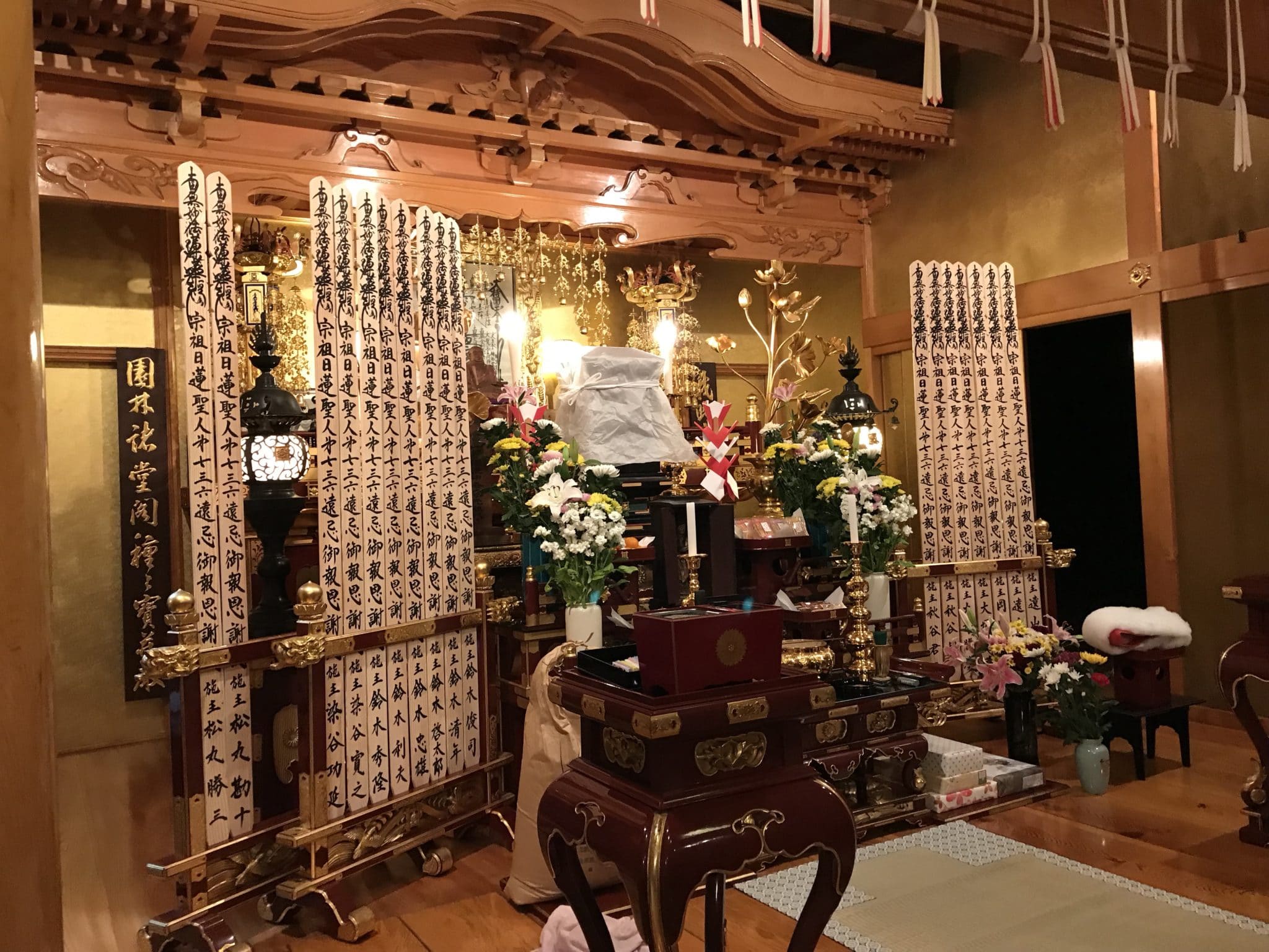 御会式の準備です。明日出仕していただける僧侶の方が2名お手伝いに来ていただきました。とても助かります。