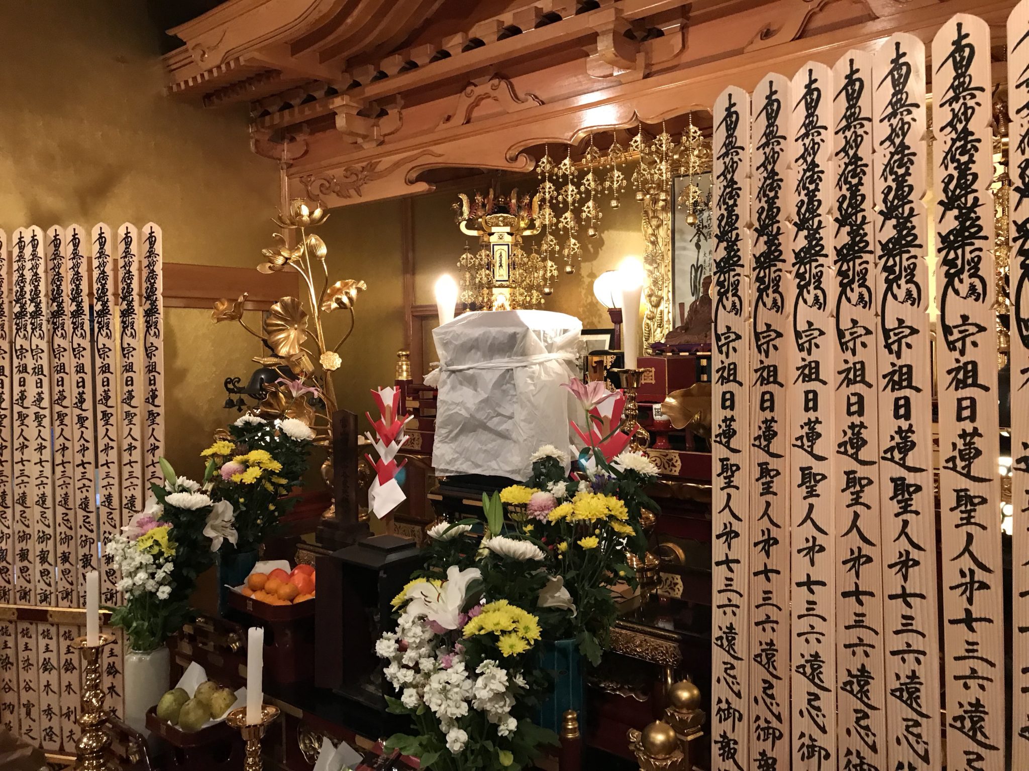 本日は法事が3件。それから明日迎える第736遠忌日蓮聖人御会式法要の準備です。