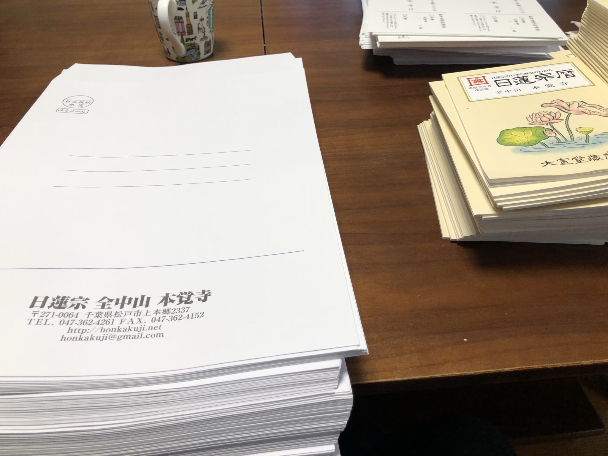 本日は本覚寺にて事務作業です。だいぶ前に新年星祭祈祷会の案内文の印刷が完了していたのですが、ラベル貼りやら封筒詰めやらの作業を放置したままで今年もあと僅かになってしまいました。発送作業完了が今日の目標です。