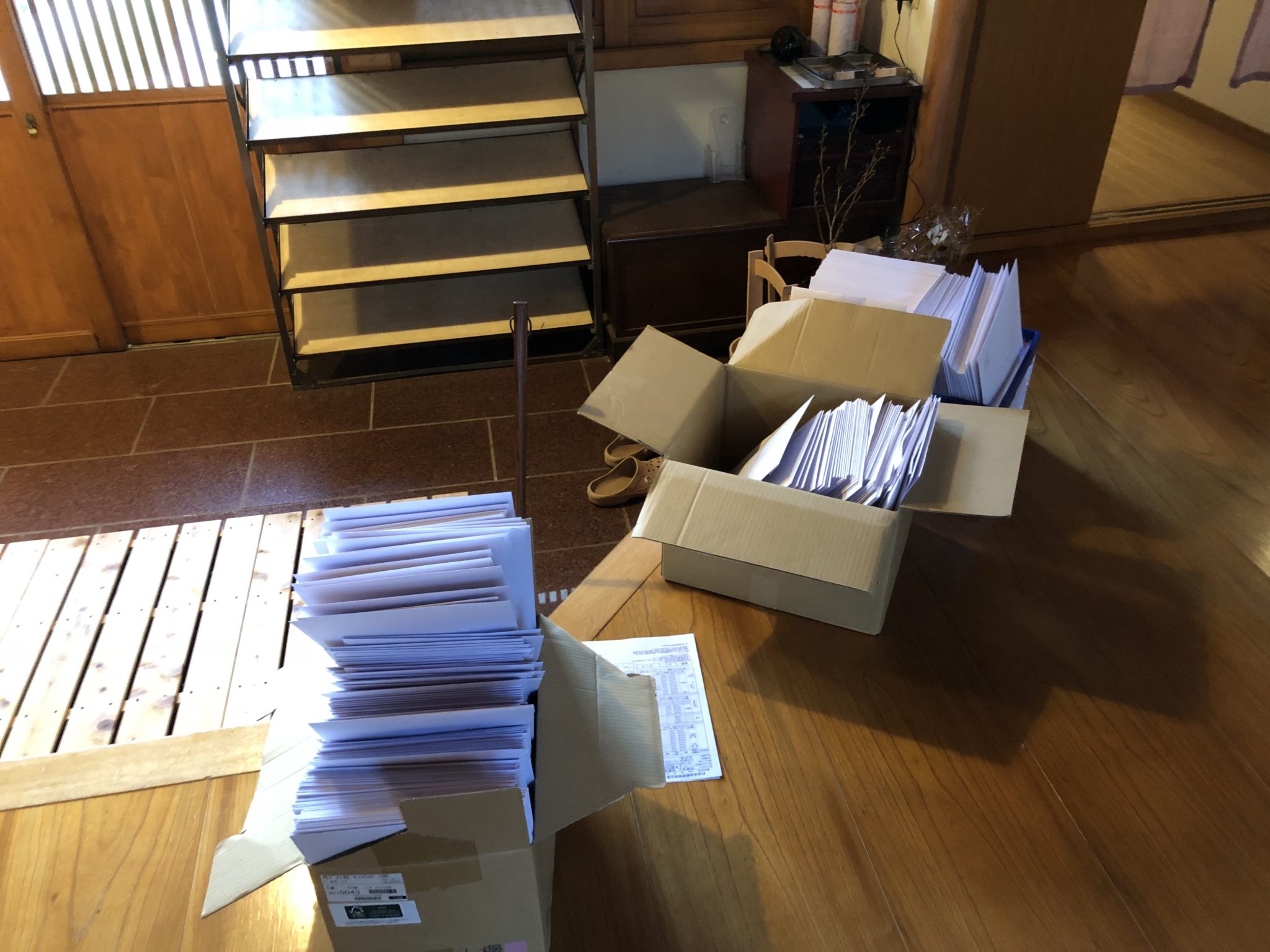 次いで封筒詰め作業。(約3時間)