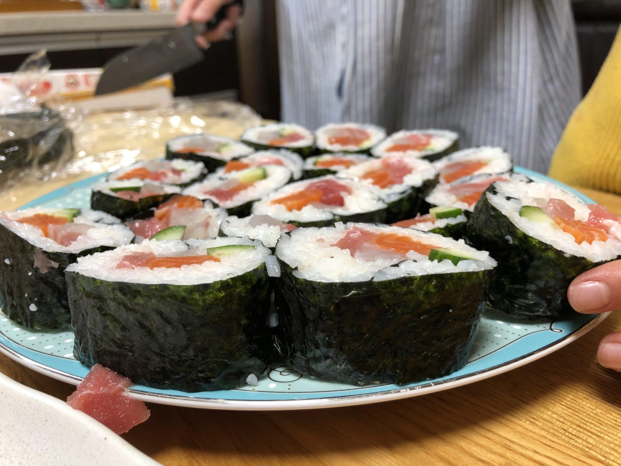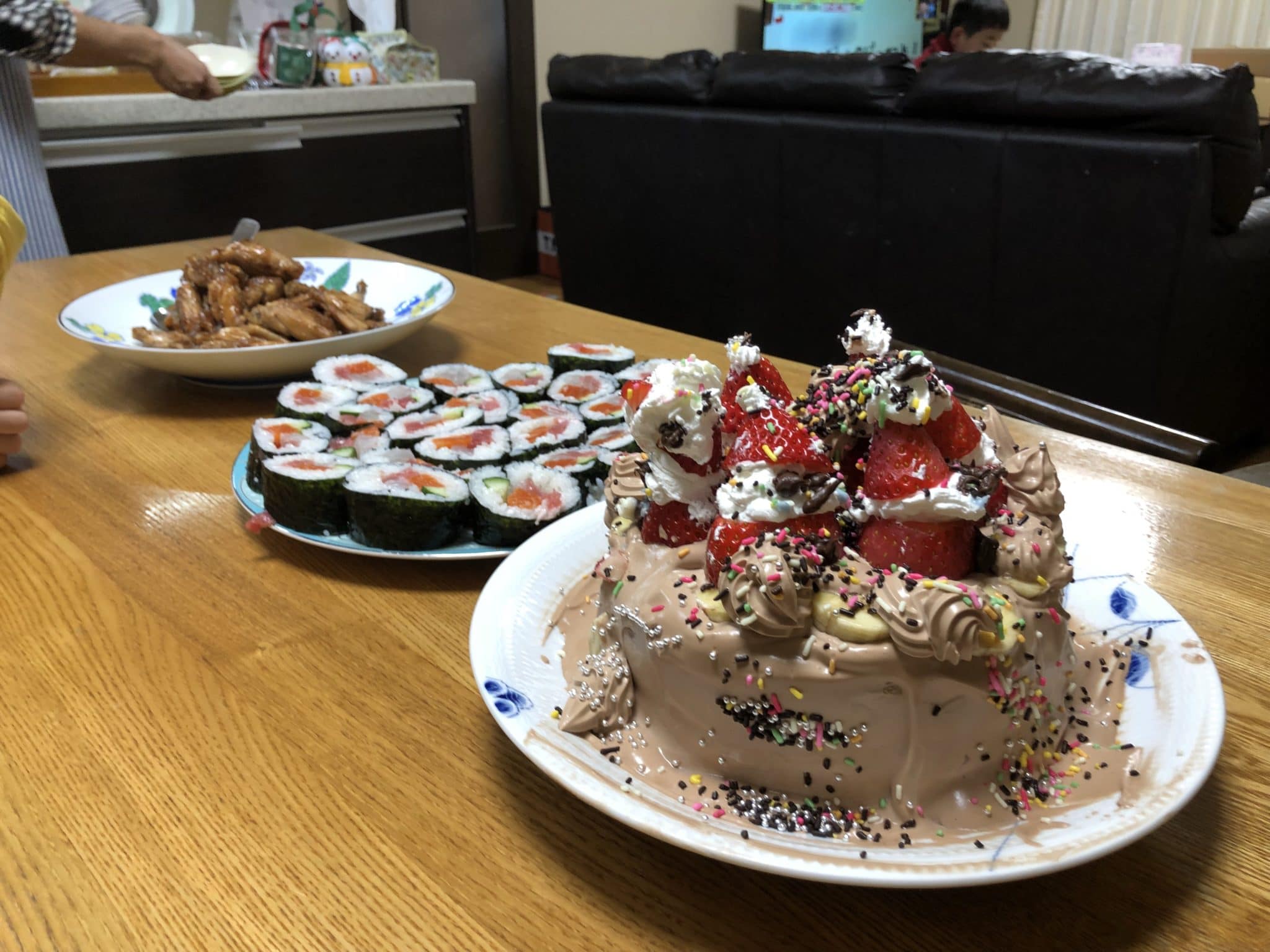 家族にてクリスマス会です。お寺とクリスマスは関係ないですが、楽しみにしている子供達のことを考えると、一つのイベントとして子供達と一緒に食事をいたしました。娘もケーキや手巻き寿司作りをお手伝いをしてくれていました。このところの家族揃って食事をする機会が激減したので、久しぶりの団欒です。