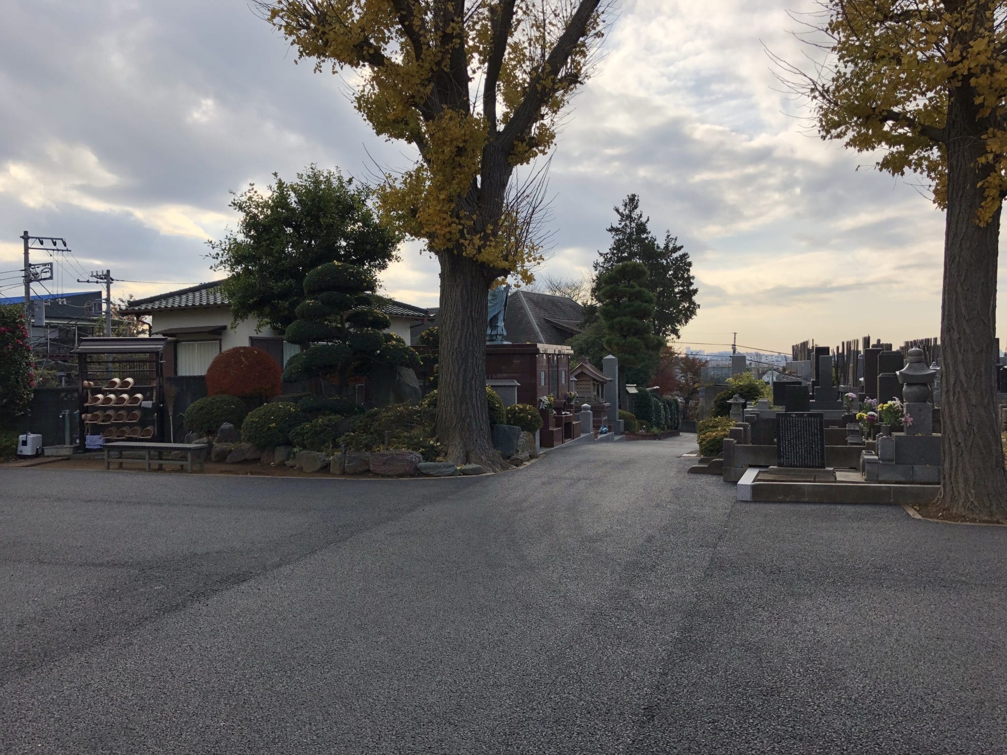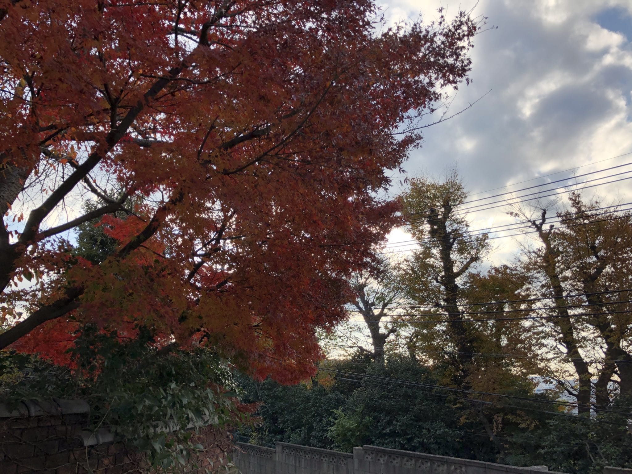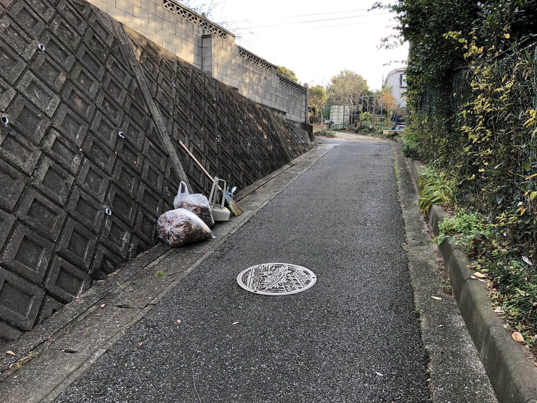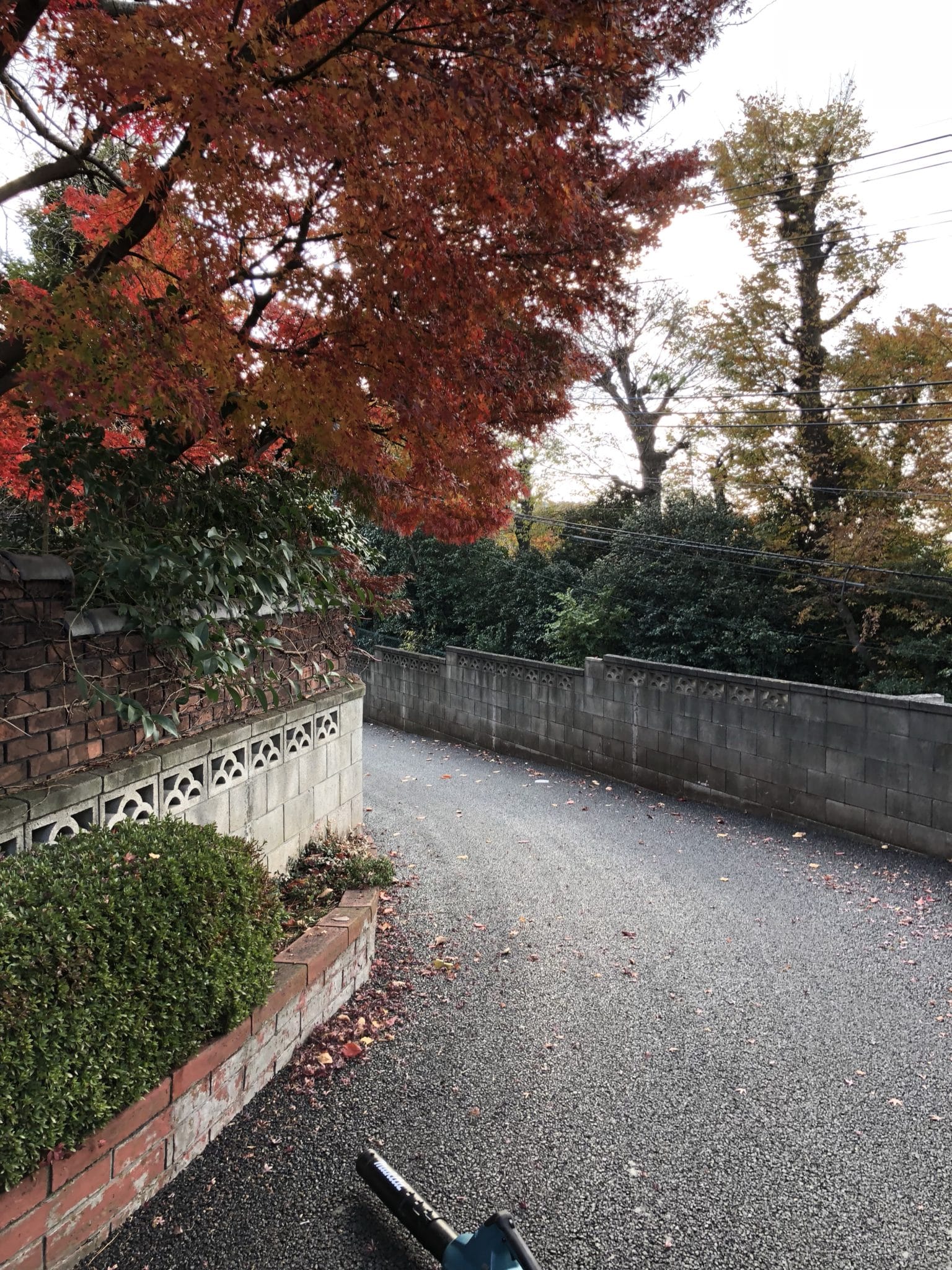 本覚寺境内の掃除です。坂の途中の紅葉の葉がきれいに色づいています。