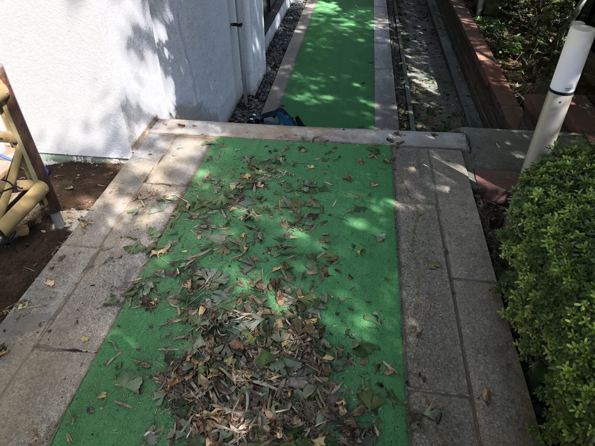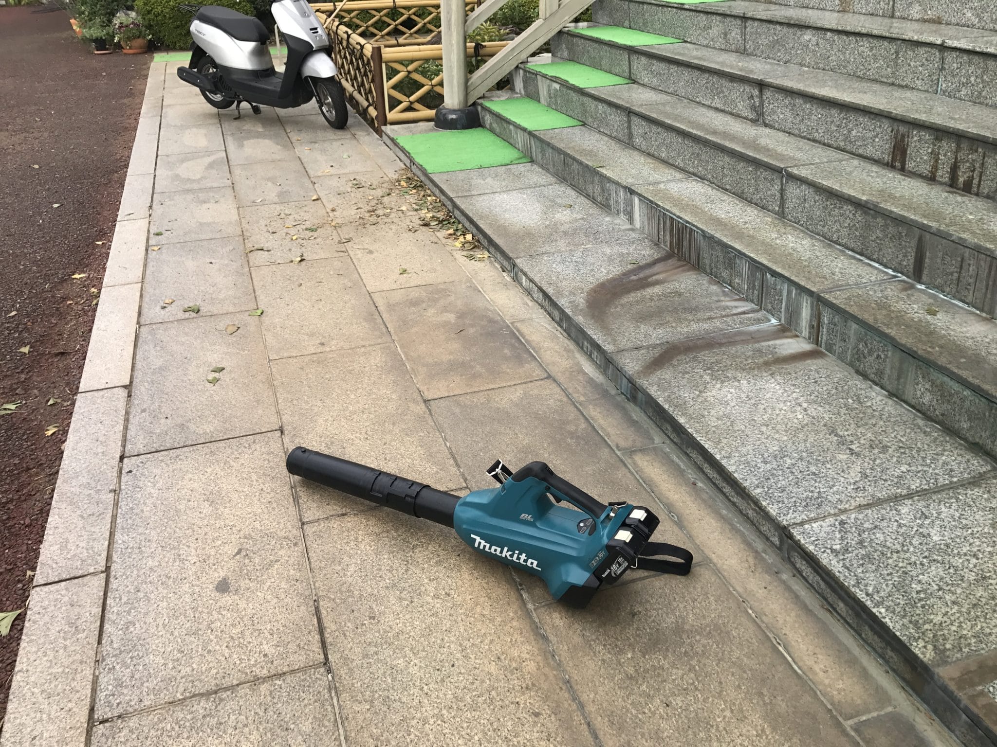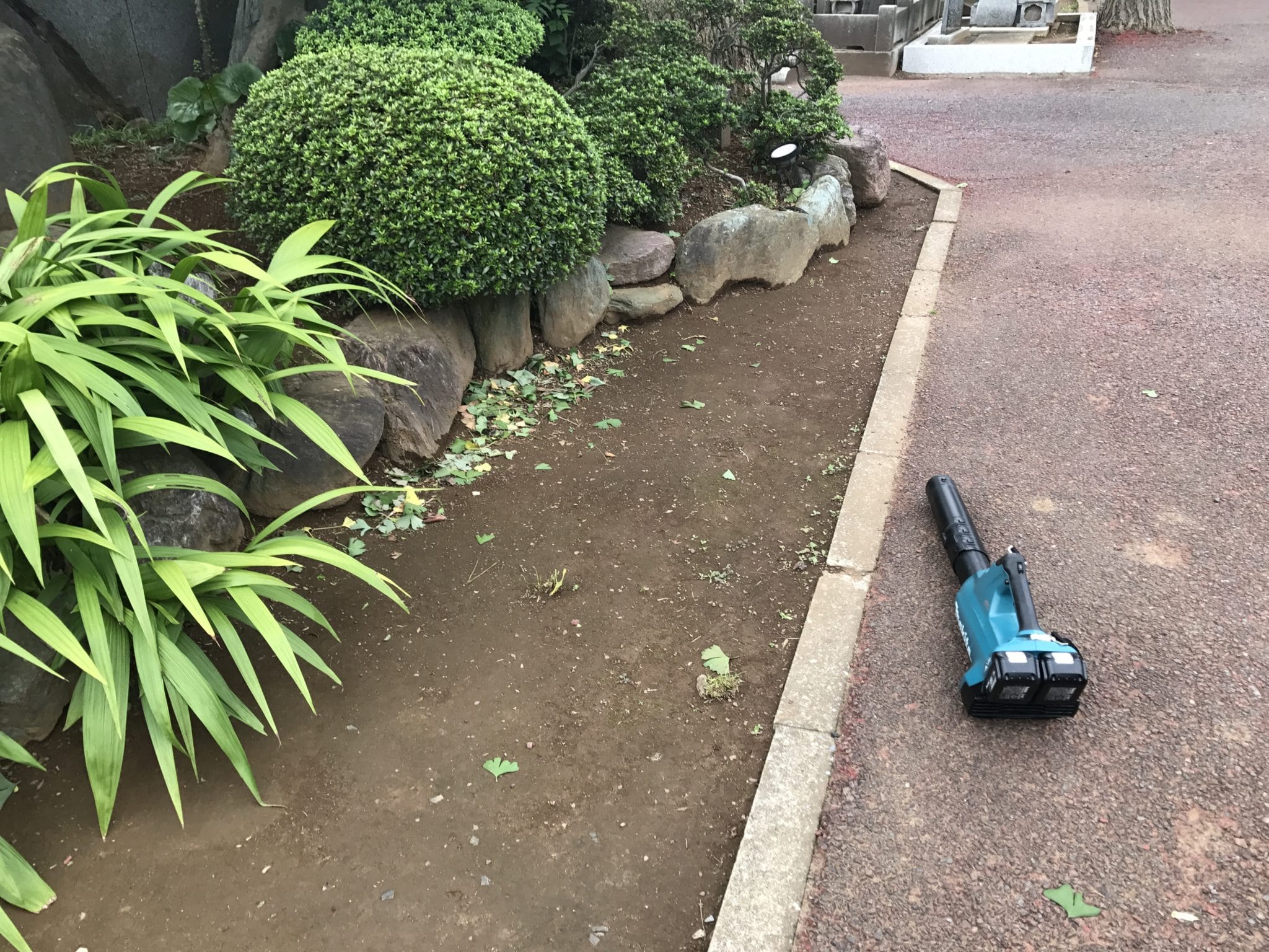ひたすら落ち葉掃除です。マキタのブロアの使い方も上手になりました。