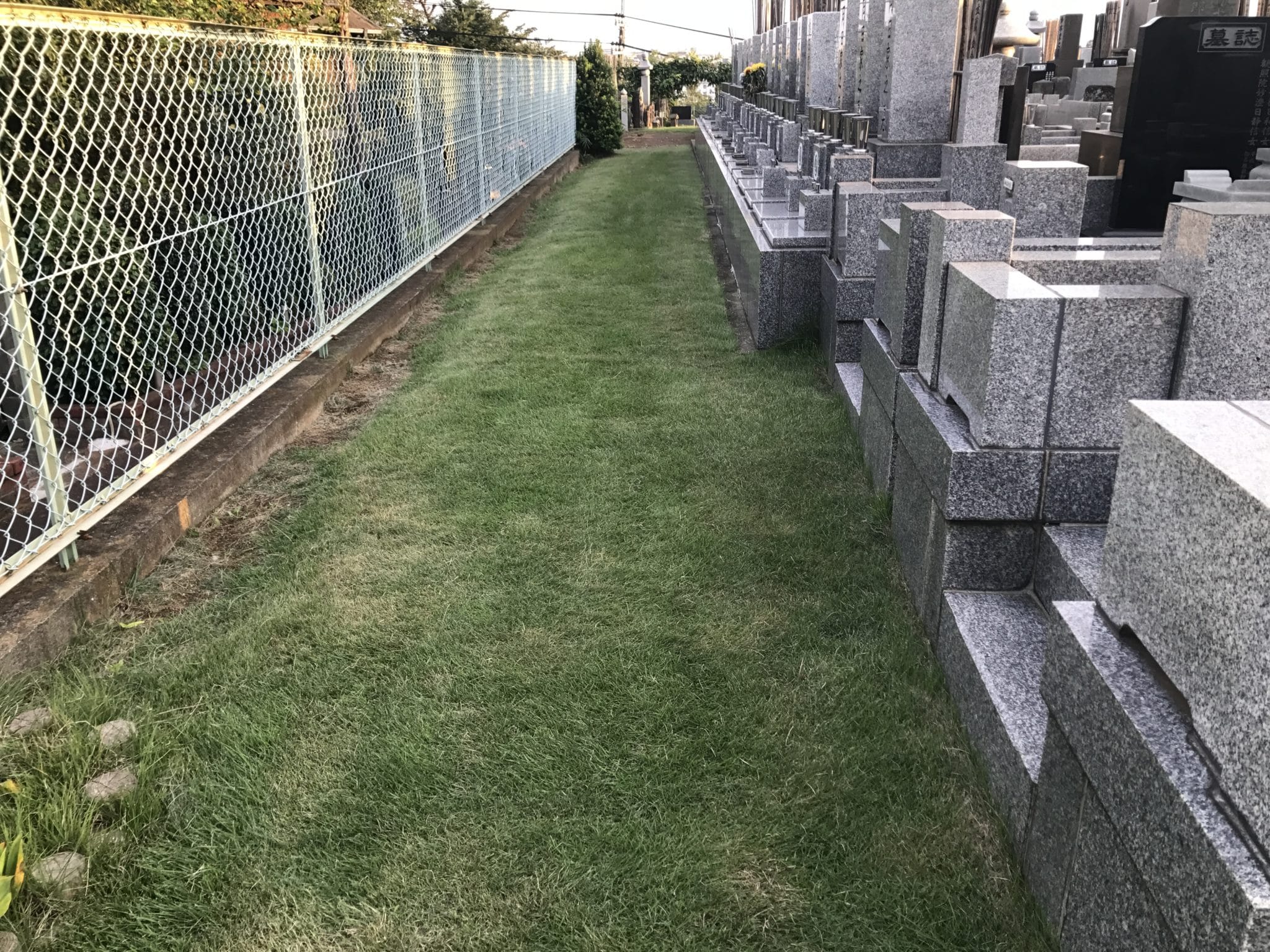 午前中に引き続き境内の芝刈です。
