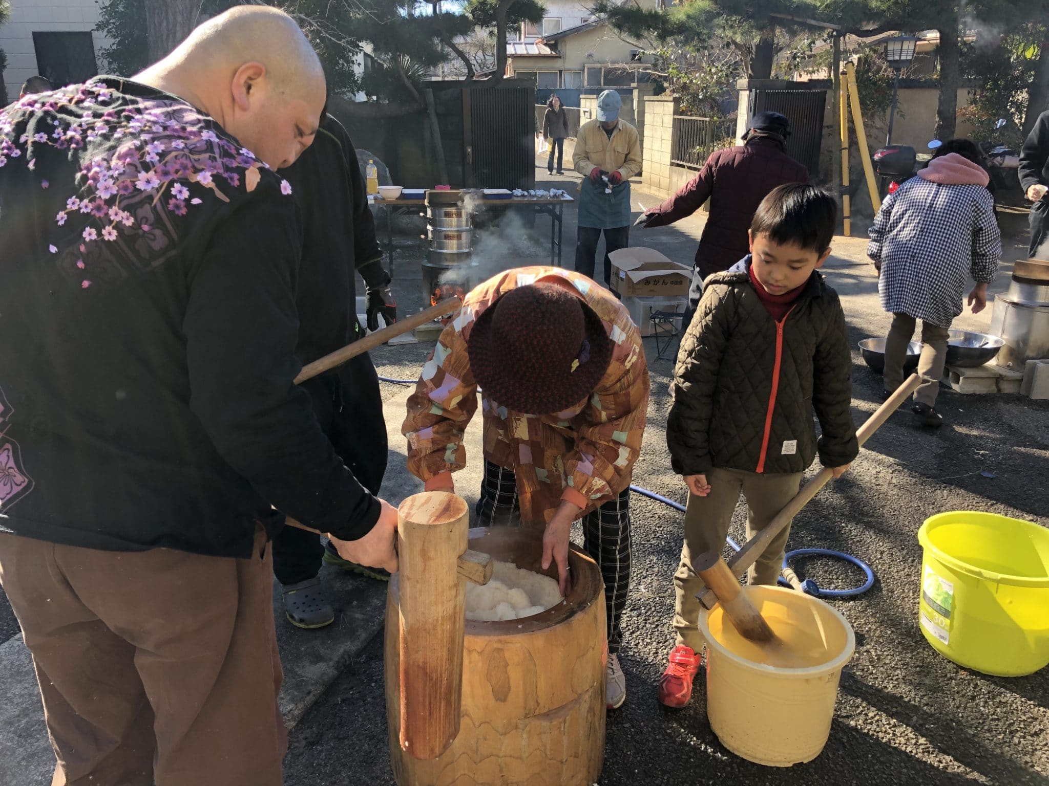 海徳寺にて餅つきです。今年で3回目の餅つき。早朝より多くの方にお手伝いいただき、沢山のお餅をつきました。