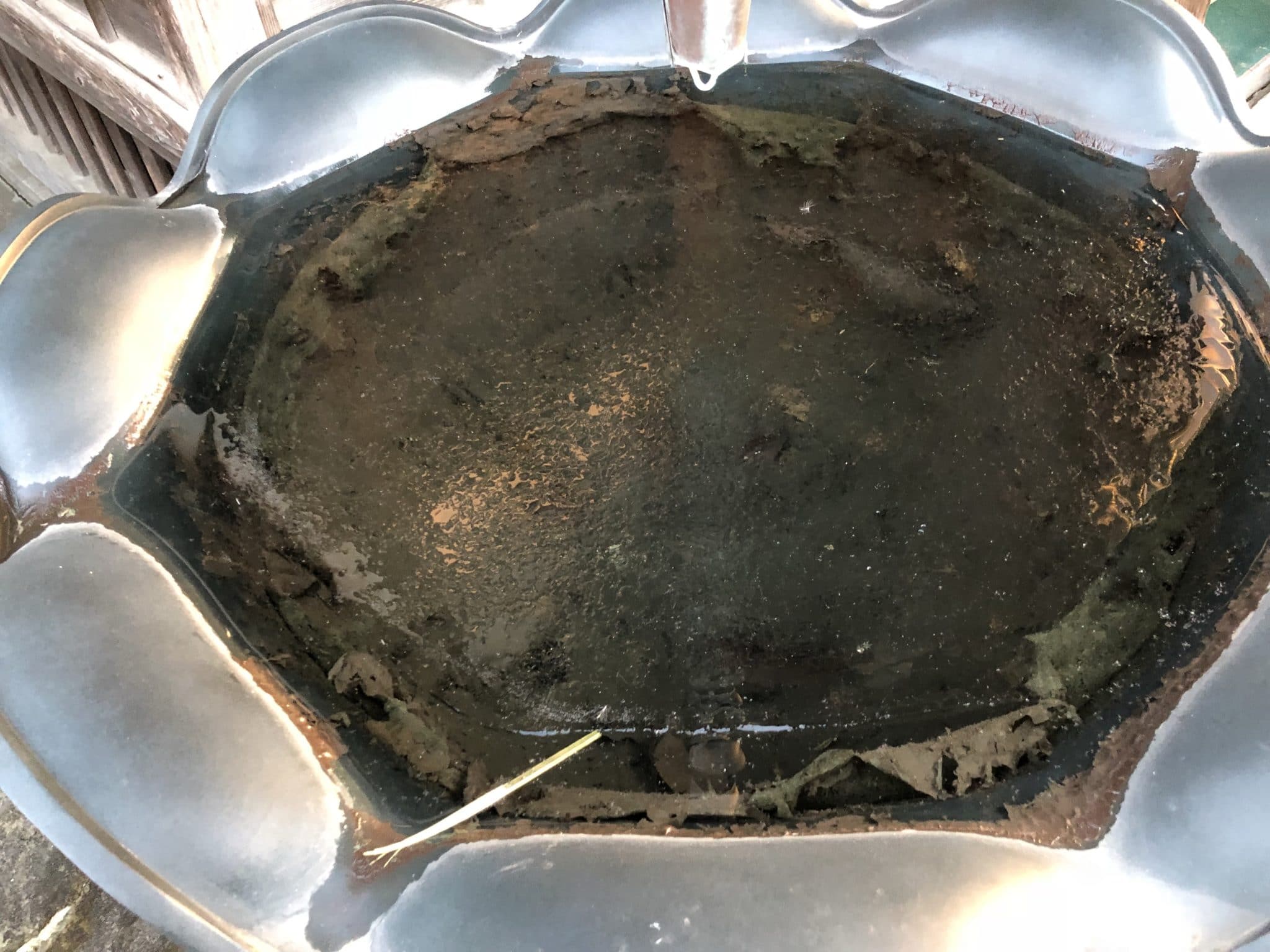 比較的暖かく感じた一日でしたが、水盤の水は凍っていました。