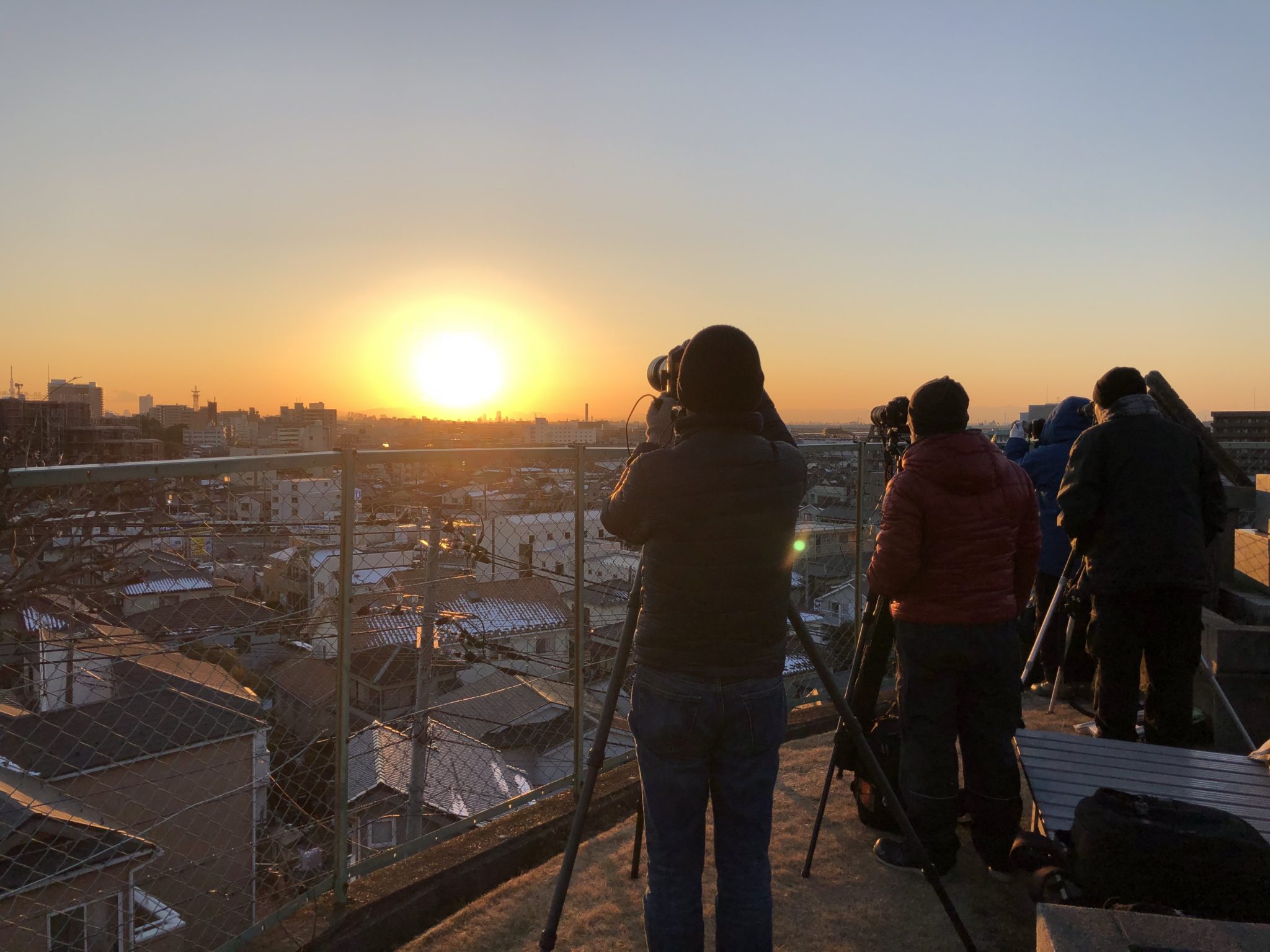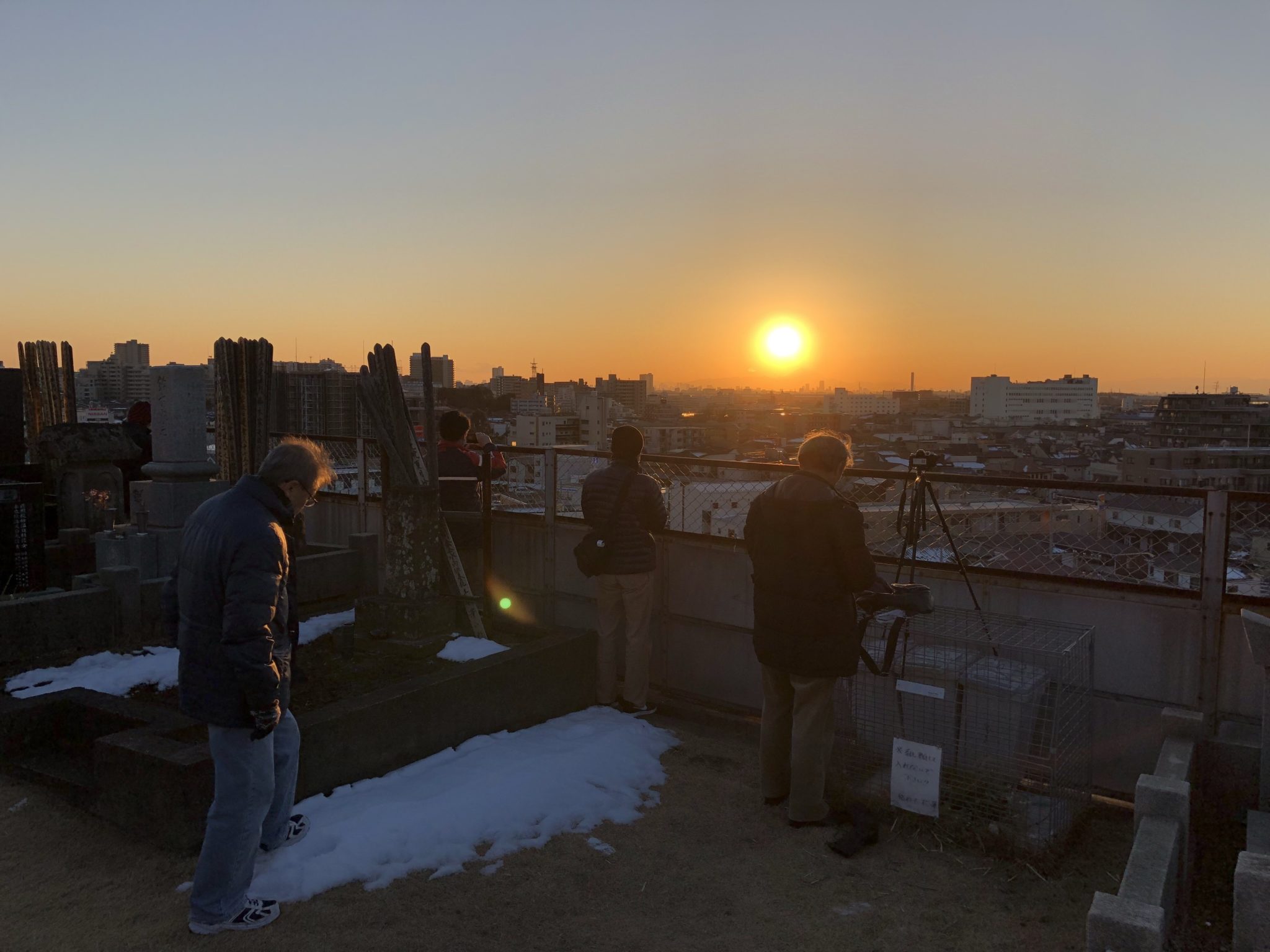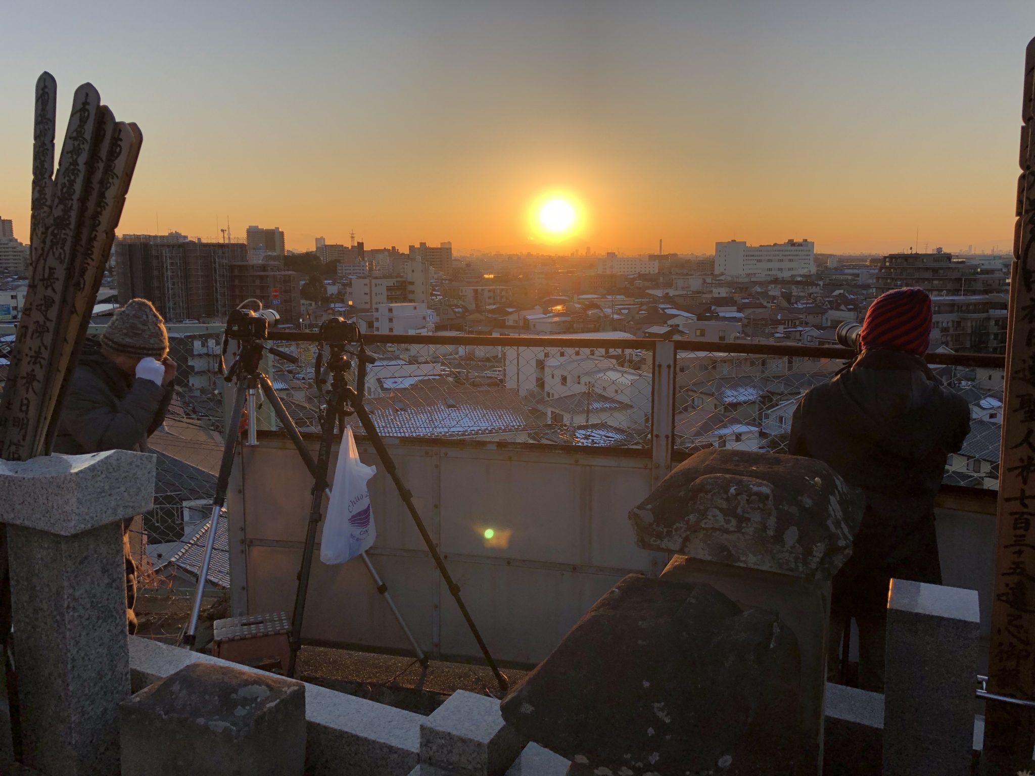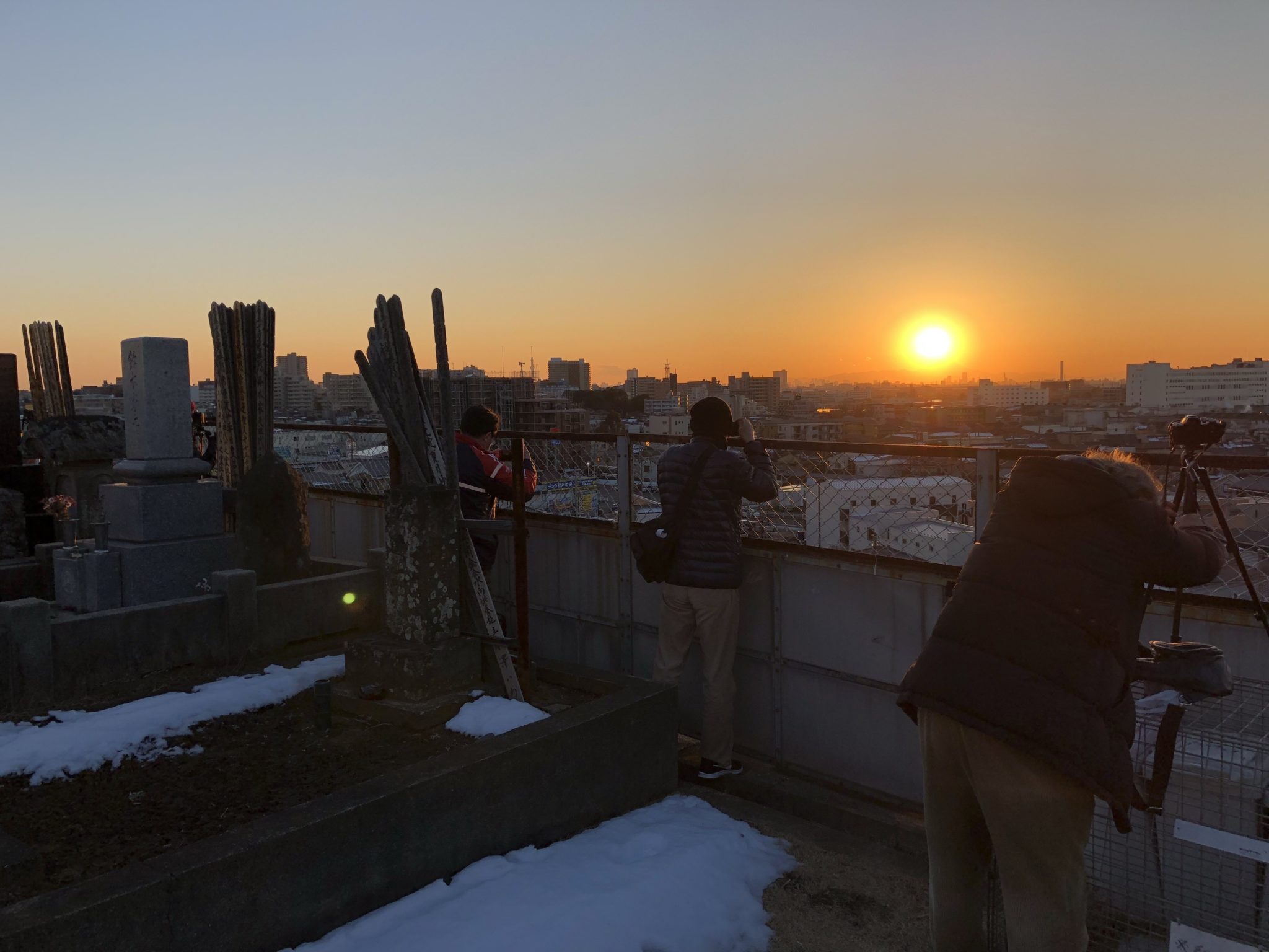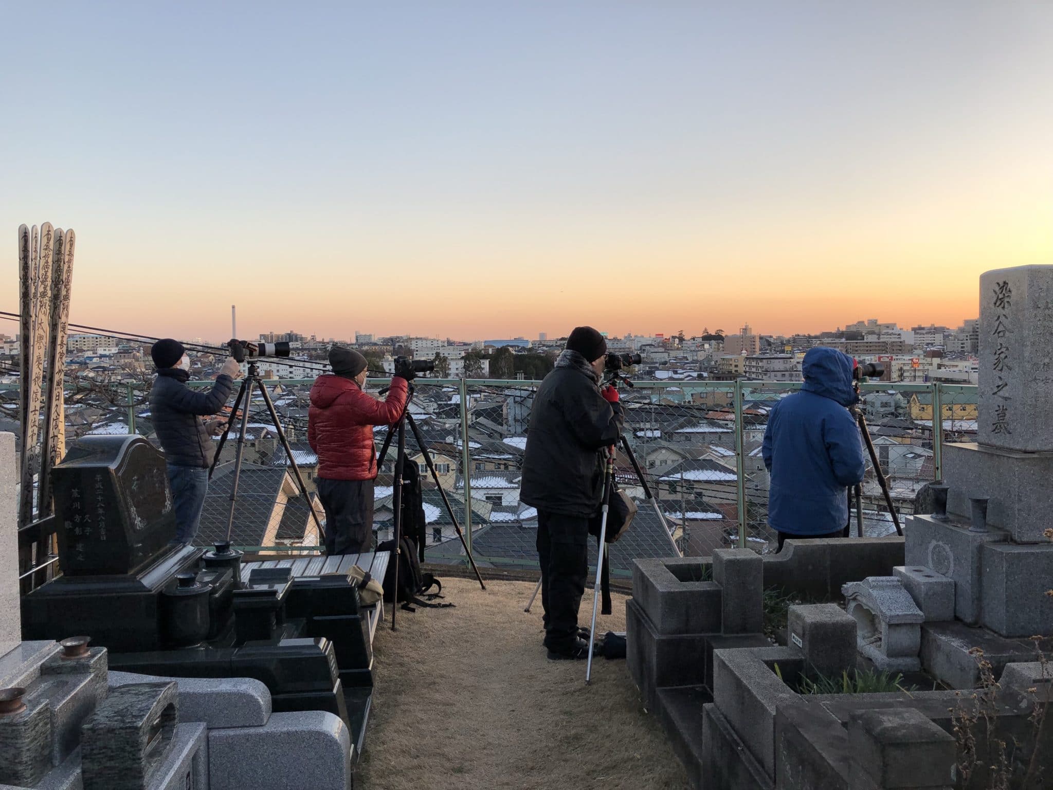 四ツ木斎場で収骨が終わり、本覚寺へと戻ると、大勢の写真家の方々がカメラを構えていました。ダイアモンド富士の時期のようです。