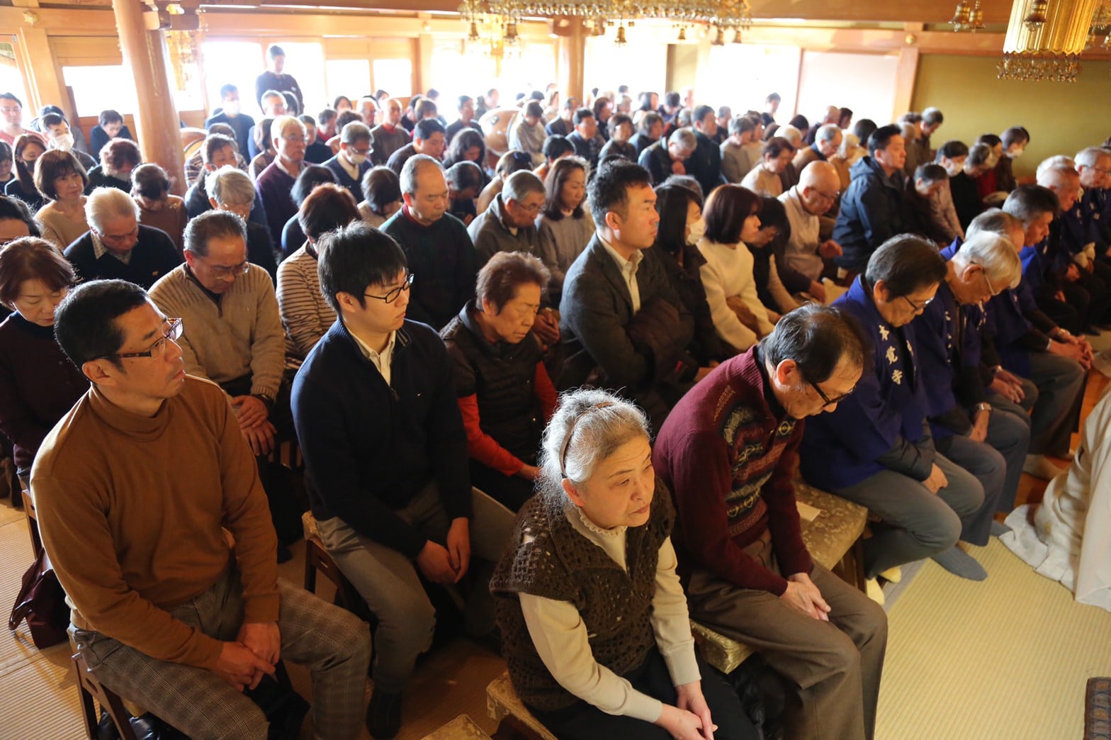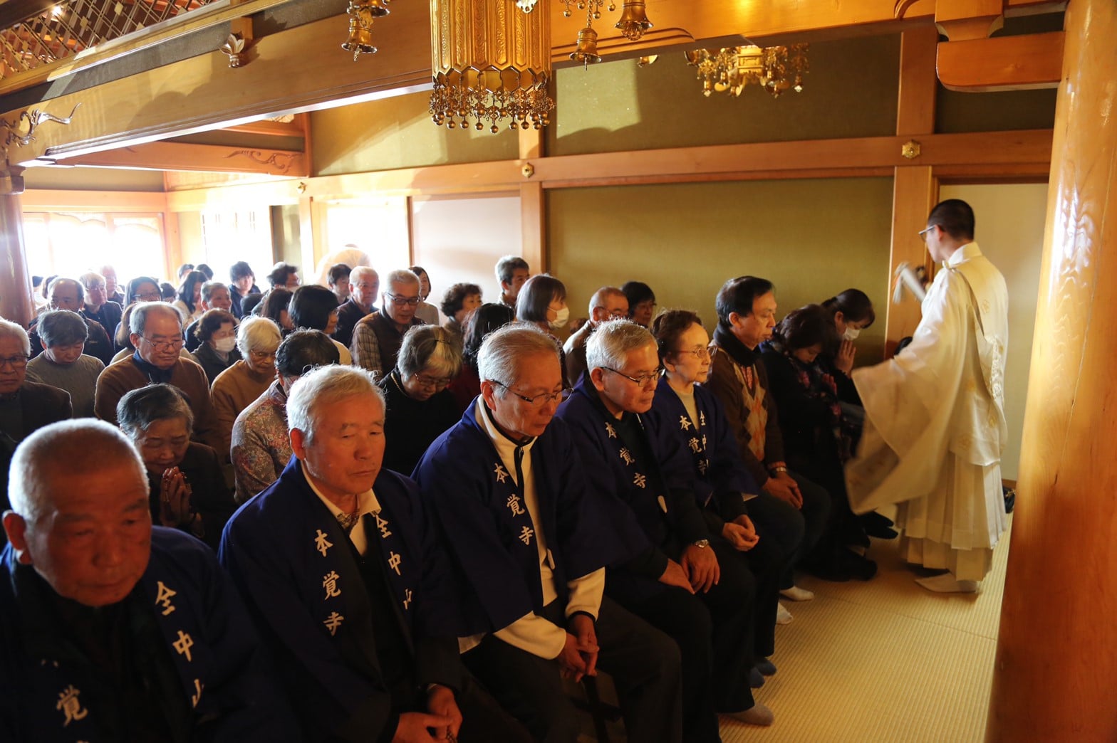 本堂内に140の椅子をご用意しておりましたが、当初の予想を大幅に上回る大勢の方にご参列いただき、170名近くの方にご参列していただきました。