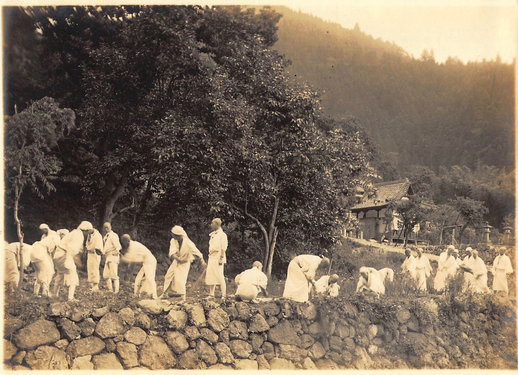 今回出てきた写真(昭和15年5月の日付)は、第1期信行道場の様子を写したものです。昭和14年4月30日に撮影された信行道場の落慶法要の写真も一緒に同封されておりましたので、未確認ではありますが、日蓮宗の正式な教育機関として信行道場が開設された最初の訓育主任は、当山の雲洞上人だったのかもしれません。