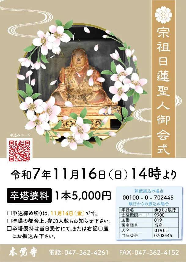 日蓮聖人第744遠忌御会式法要を下記の通り行います。